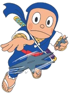 Kanzo Hattori (ハットリカンゾウ, Hattori Kanzō), also known as Ninja Hattori-Kun (忍者ハットリくん, Ninja Hattori-Kun) is the main protagonist of the Ninja Hattori-kun franchise. He is an 11-years old young ninja and is about 140 cm tall he is from the Iga Clan. He is the son of Jinchu Hattori and Mrs Hattori, the elder brother of Shinzo Hattori, and owner of Shishimaru. He is also a descendant of Hattori Hanzō. Trained in the most peaceful village of Iga, Kanzo is around to help his luckless friend Kenichi from the devious Kemuzou Kemumaki.